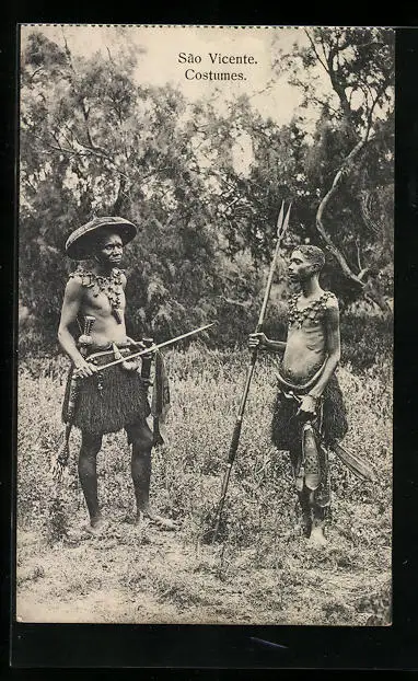 AK Sao Vicente, Indigene Krieger in Tracht mit Waffen