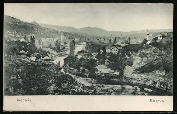 AK Sarajevo, Bendbasa, Ortsansicht aus der Vogelschau