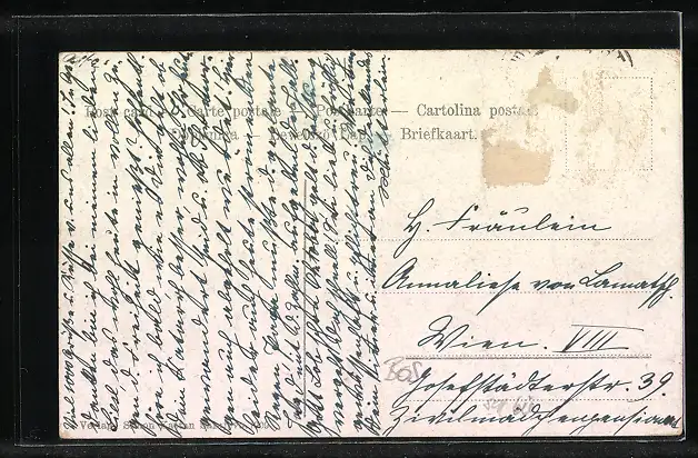 alte Ansichtskarte, gelaufen, Briefmarke entfernt, rückseitig Oberflächenschaden, guter Zustand