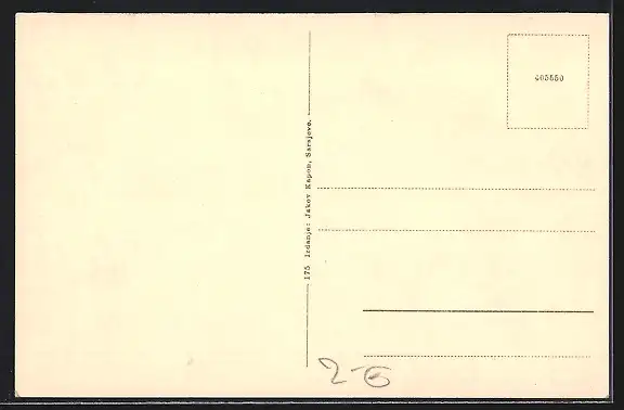 Personenbezogene Daten auf der Rückseite der Karte wurden durch blauen Textmarker unkenntlich gemacht. Die blauen Stellen sind auf die Vorderseite durchgeweicht und wirken sich negativ auf das Postkartenfoto aus