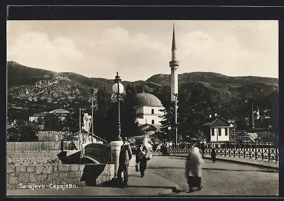 AK Sarajevo, Brücke in der Stadt, Minarett