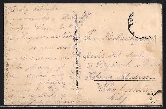 alte Ansichtskarte, gelaufen, Briefmarke entfernt, guter Zustand