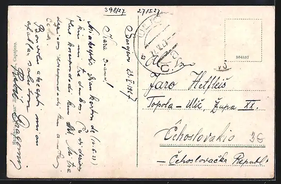 gelaufen 1927, Briefmarke entfernt, guter Zustand