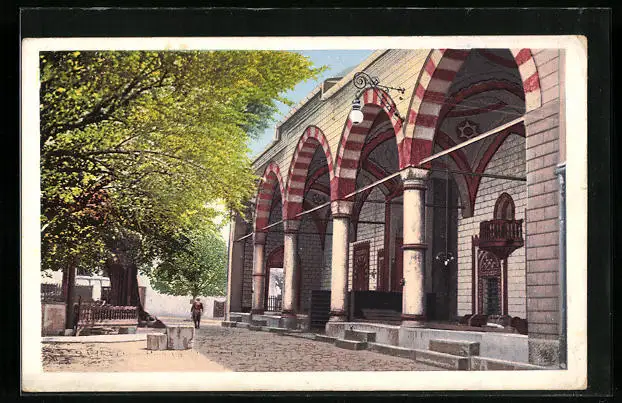 AK Sarajevo, Passant vor einem Baum an den Anlagen