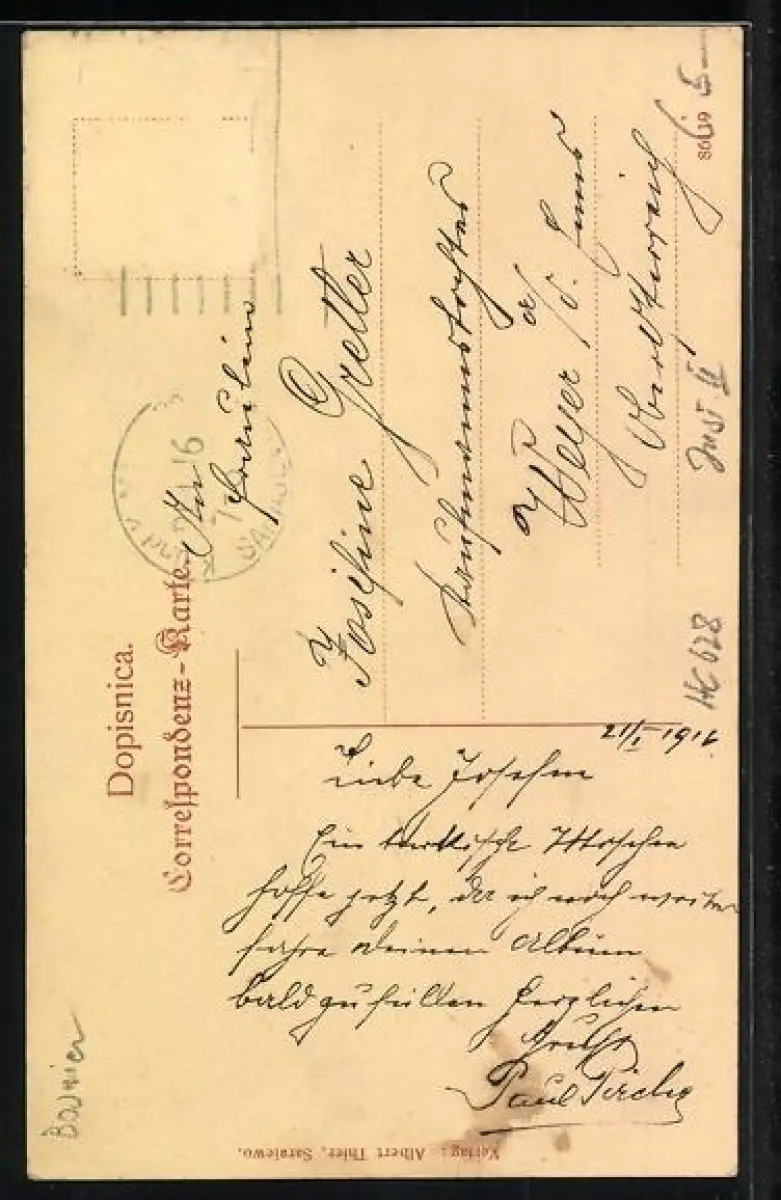alte Ansichtskarte, gelaufen, Briefmarke entfernt, rückseitig Oberflächenschaden, Einriss re. oben, guter Zustand