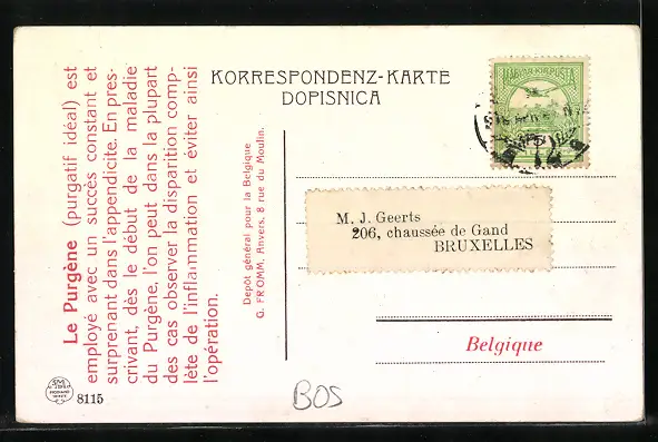 Personenbezogene Daten auf der Rückseite der Karte wurden durch blauen Textmarker unkenntlich gemacht. Die blauen Stellen sind auf die Vorderseite durchgeweicht und wirken sich negativ auf das Postkartenfoto aus