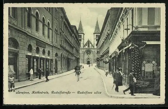 AK Sarajewo, Katedrale, Rudolfstrasse-Rudolfova ulica