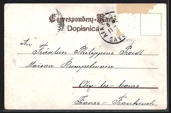 alte Ansichtskarte, gelaufen, Briefmarke entfernt, rückseitig Oberflächenschaden, Eckknick re. oben, guter Zustand