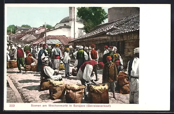 AK Sarajewo, Scenen am Wochenmarkt, Getreideverkauf