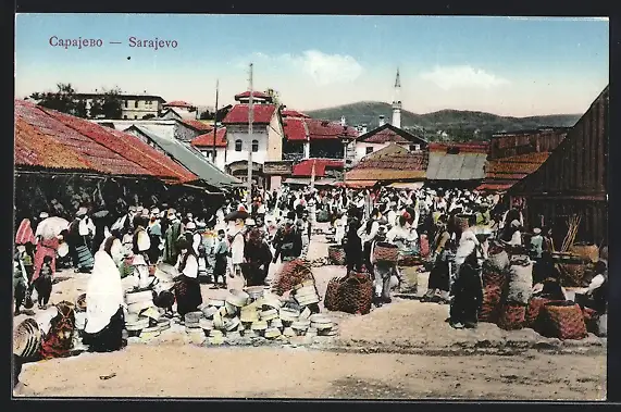 AK Sarajewo, buntes Treiben auf dem Markt Capajebo