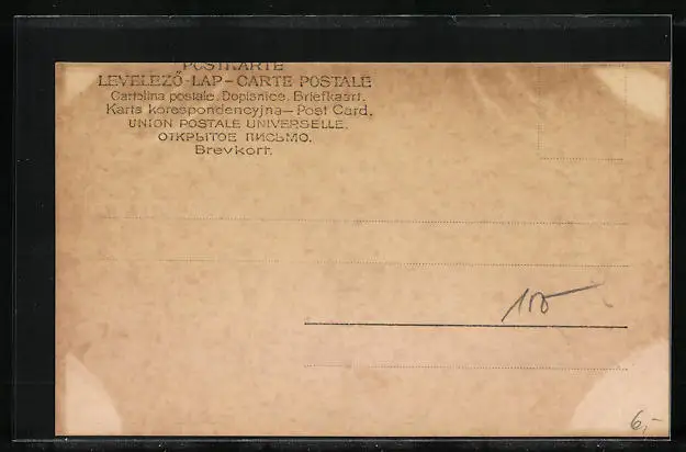Personenbezogene Daten auf der Rückseite der Karte wurden durch blauen Textmarker unkenntlich gemacht. Die blauen Stellen sind auf die Vorderseite durchgeweicht und wirken sich negativ auf das Postkartenfoto aus