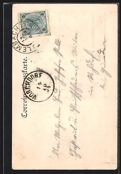 alte Ansichtskarte, gelaufen 1904, Stempelspur, Oberflächenschaden li. unten, guter Zustand
