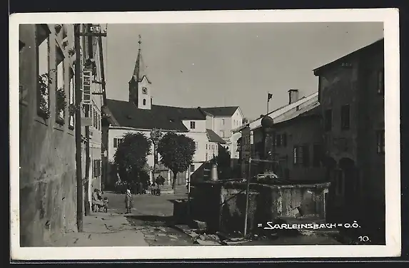 AK Sarleinsbach /O.-Ö., Strassenpartie mit Brunnen