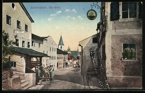 AK Sarleinsbach /Ob.-Oest., Strassenpartie mit Gasthaus