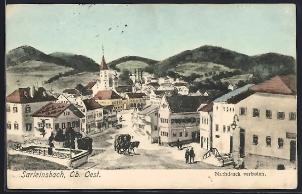 AK Sarleinsbach, Ortsansicht mit Strassenpartie