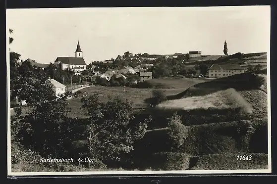 AK Sarleinsbach, Teilansicht mit Kirche und Hügeln