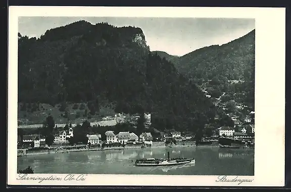 AK Sarmingstein /O.-Ö., Uferpartie mit Dampfer