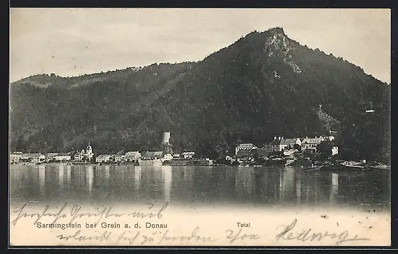 AK Sarmingstein bei Grein, Gesamtansicht an der Donau