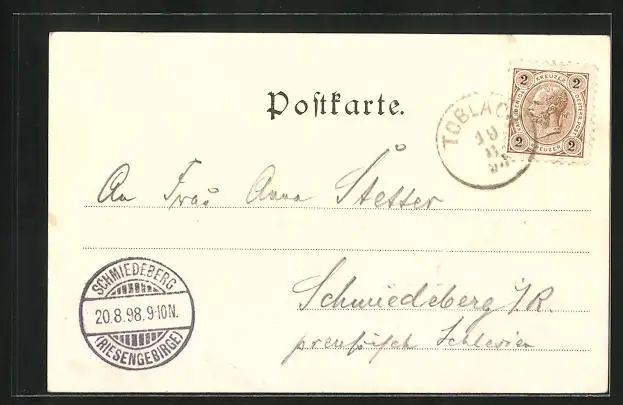 alte Ansichtskarte, gelaufen 1898, Eckknick li. unten, Stempelspur, guter Zustand