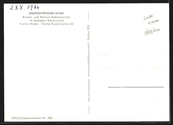 ungelaufen, Rückseite beschrieben 1964, guter Zustand