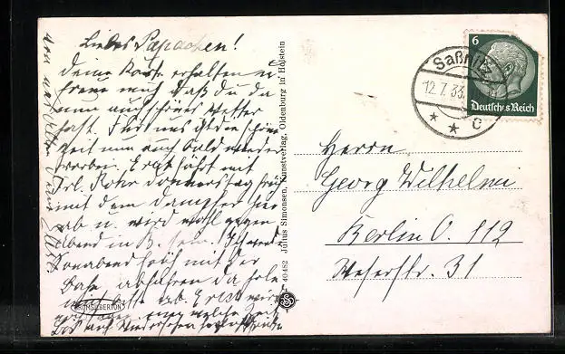 alte Ansichtskarte, gelaufen 1933, guter Zustand