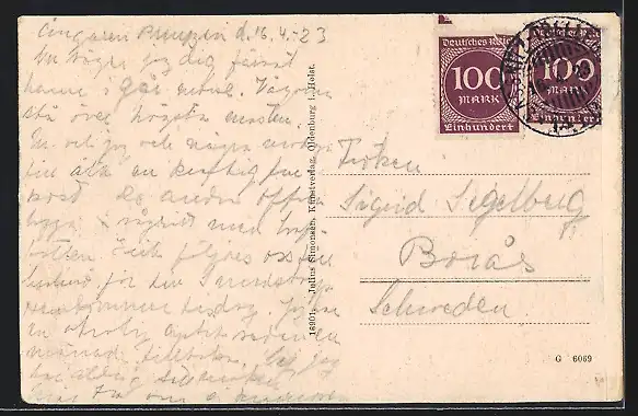 alte Ansichtskarte, gelaufen 1923, Eckknick re. unten, guter Zustand