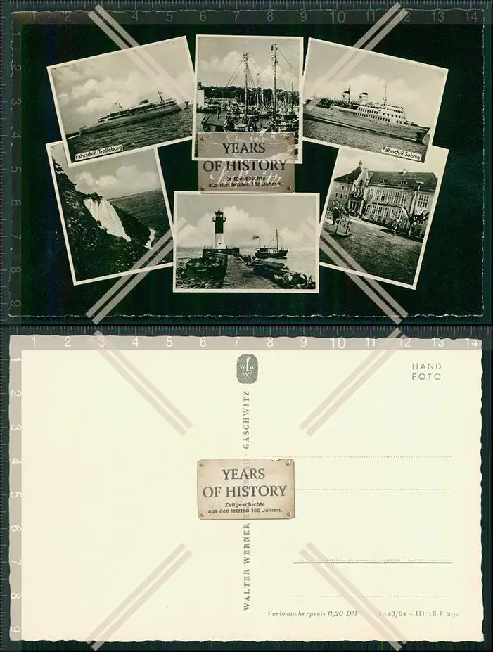 AK Saßnitz auf Rügen Leuchtturm Fährschiff Trelleborg uvm. Mehrfach Ansicht