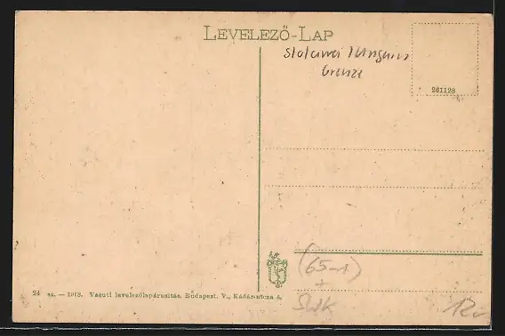 Personenbezogene Daten auf der Rückseite der Karte wurden durch blauen Textmarker unkenntlich gemacht. Die blauen Stellen sind auf die Vorderseite durchgeweicht und wirken sich negativ auf das Postkartenfoto aus