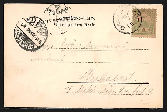 alte Ansichtskarte, gelaufen 1905, Eckknick re. oben, kleiner Einriss li. unten, guter Zustand