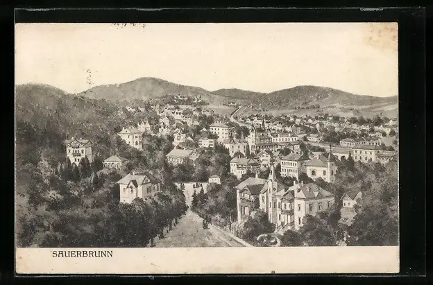 AK Sauerbrunn, Ortsansicht aus der Vogelschau