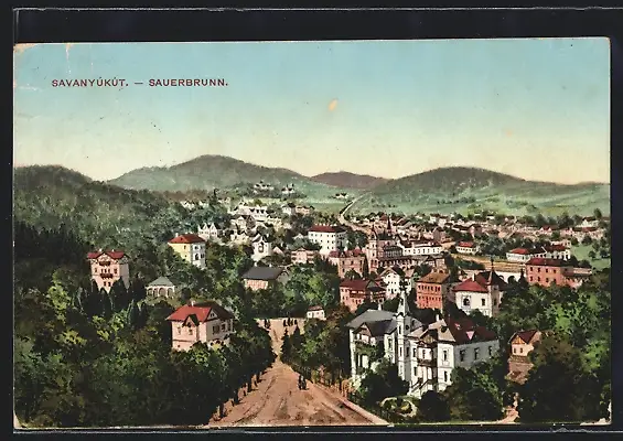 AK Sauerbrunn, Ortsansicht bei Dämmerung