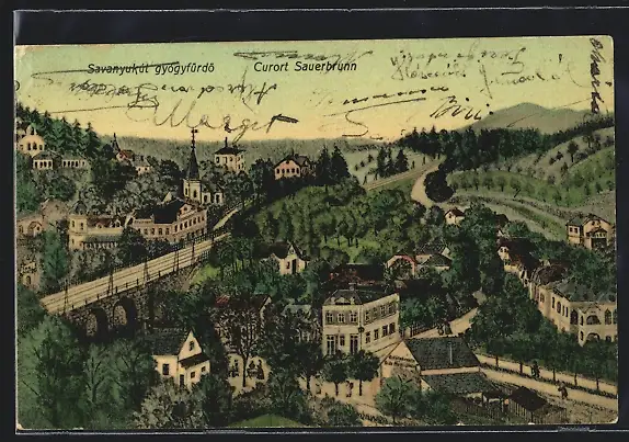 AK Sauerbrunn, Ortsansicht im Frühjahr