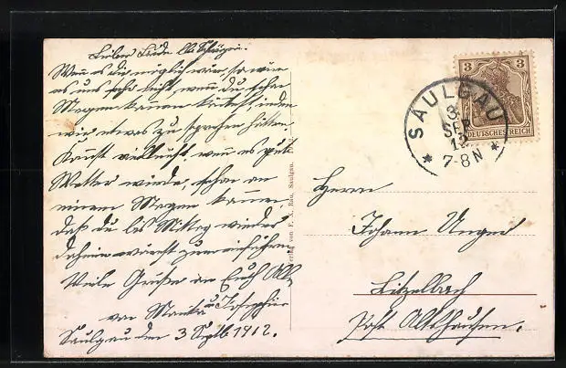 alte Ansichtskarte, gelaufen 1912, guter Zustand