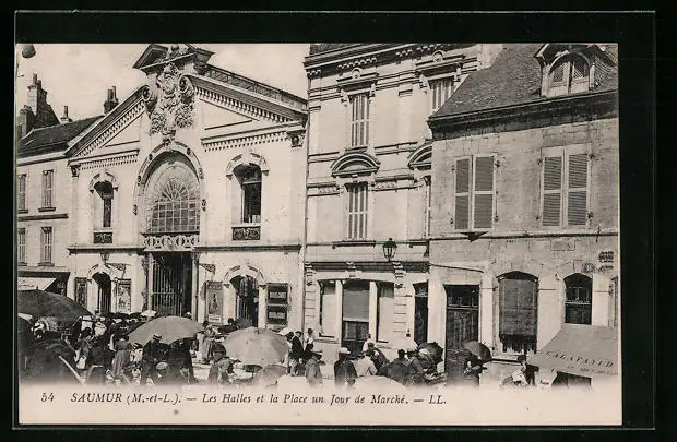 AK Saumur, Les Halles et la Place un Jour de Marché