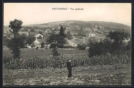 AK Sauvagnac, Vue générale du village avec campagne environnante