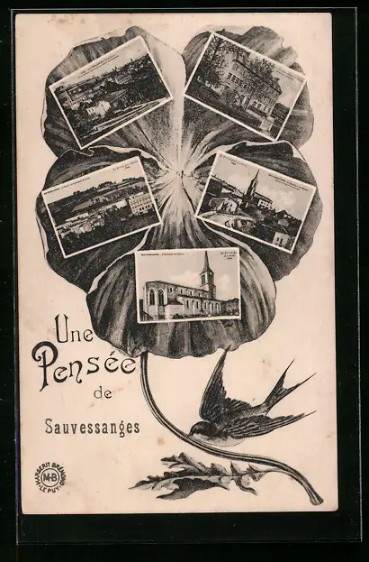 AK Sauvessanges, L'Eglise et le Groupe Scolaire, Vue generale Sud-Ouest