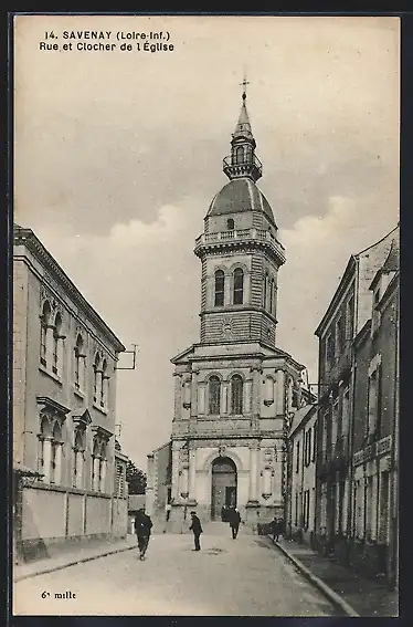 AK Savenay /Loire-Inf., Rue et Clocher de l`Église
