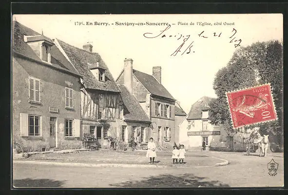 AK Savigny-en-Sancerre, Place de l`Eglise, coté Ouest