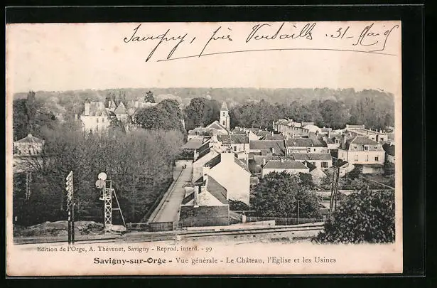 AK Savigny-sur-Orge, Vue generale, le Chateau, l`Eglise & Usines
