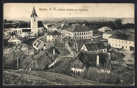 AK Saxen /O.-Ö., Ortspartie mit Kirche