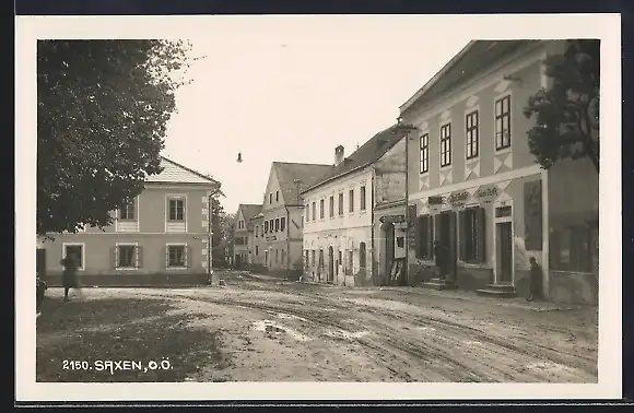 AK Saxen /O. Ö., Strassenpartie mit Gasthaus