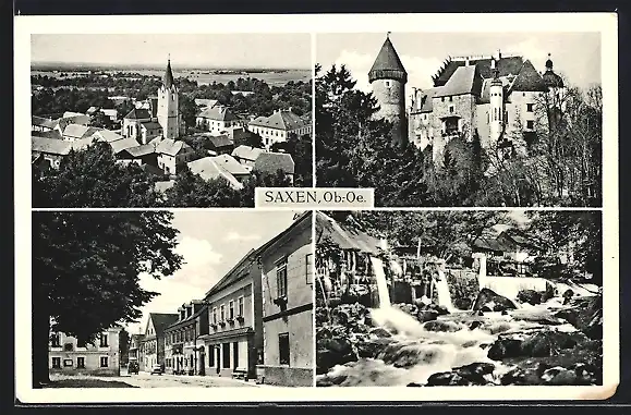 AK Saxen /Ob.-Oe., Ortsansicht, Strassenpartie, Wasserfall