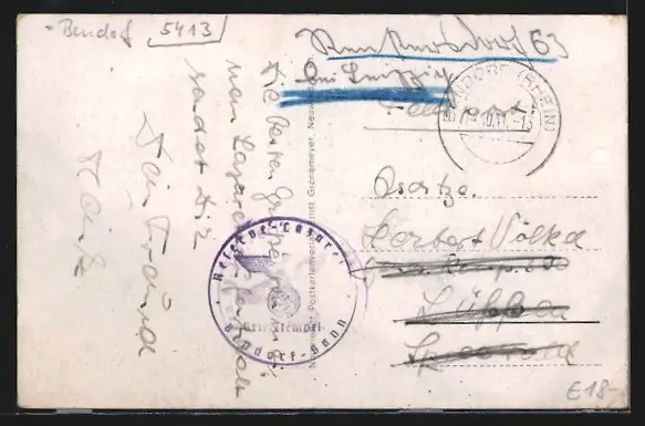 gelaufen 1941, Eckknicke li. unten, guter Zustand