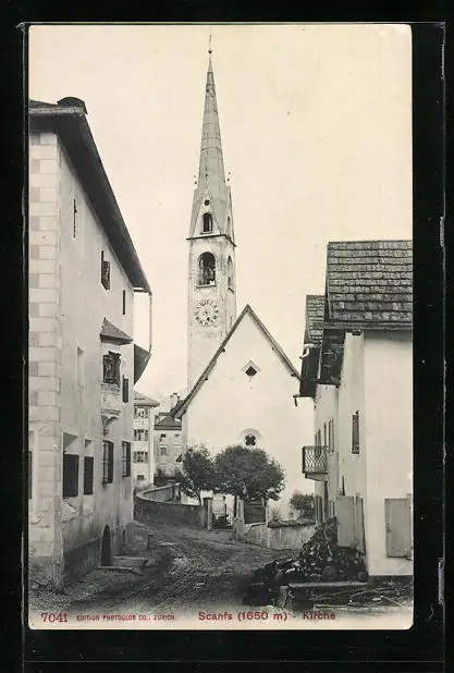 AK Scanfs, Strassenpartie mit Blick zur Kirche