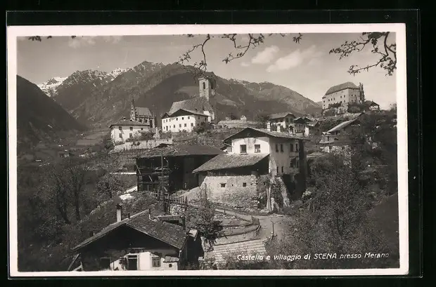 AK Scena b. Meran, Ortsansicht mit Kirche