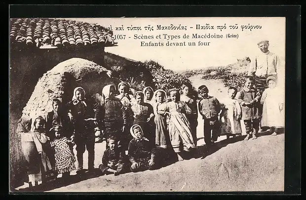 AK Scènes et Types de Macédoine, Enfants devant un four