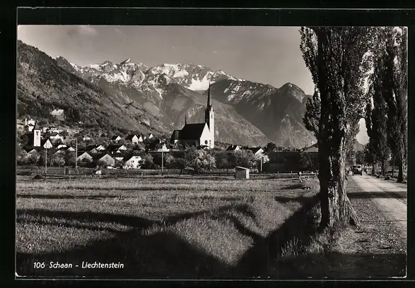 AK Schaan, Liechtenstein, Blick zur Kirche im Ort