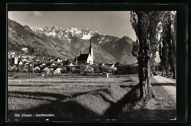 AK Schaan, Liechtenstein, Blick zur Kirche im Ort