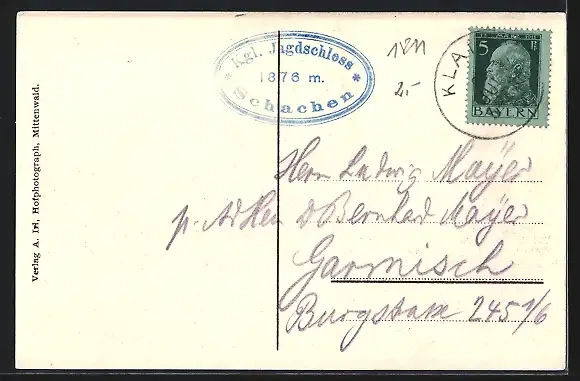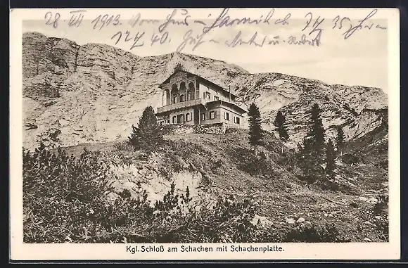 AK Schachen, Gasthaus Königliches Jagdschloss mit Schachenplatte