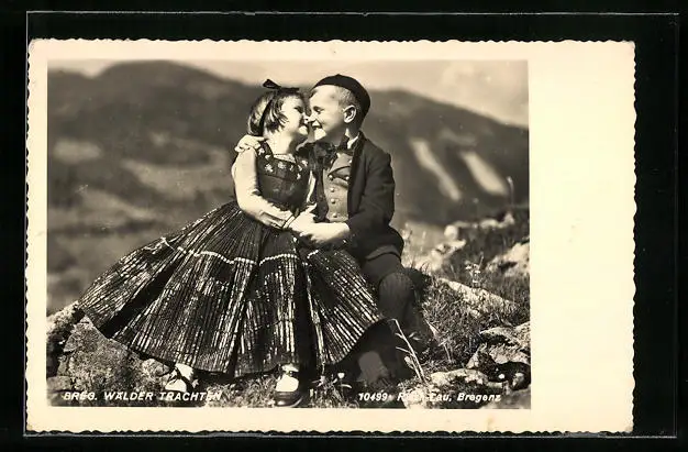 AK Schäkerndes kleines Pärchen in Breg. Wälder Trachten